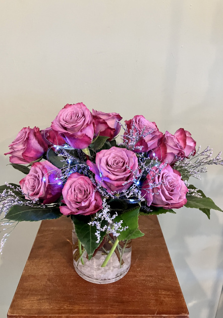 Hot Pink Edge Roses with Sea Lavender