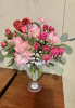 Glass goblet with mini roses alstroemeria babies breath and sequin heart accent 13 inches higher overall