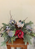 Wintergreen centerpiece with red twigs berries noel ornament and matching ball ornaments pinecones and ribbon 22 inches long