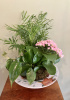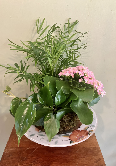 with two easy care indoor plants and one blooming succulent 11 inches wide