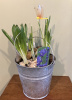 Galvanized bucket with mini iris many daffodils and Hiaasen with dragonfly accent watch them grow and bloom 5 inches diameter
