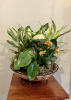Rope Woven on Metal Frame Basket with Mix of 4 greenhouse selected easy care indoor plants and 1 Blooming Succulent 8” wide overall