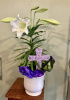 Easter lily in white ceramic container accident with metal cross he is risen 22 inches high